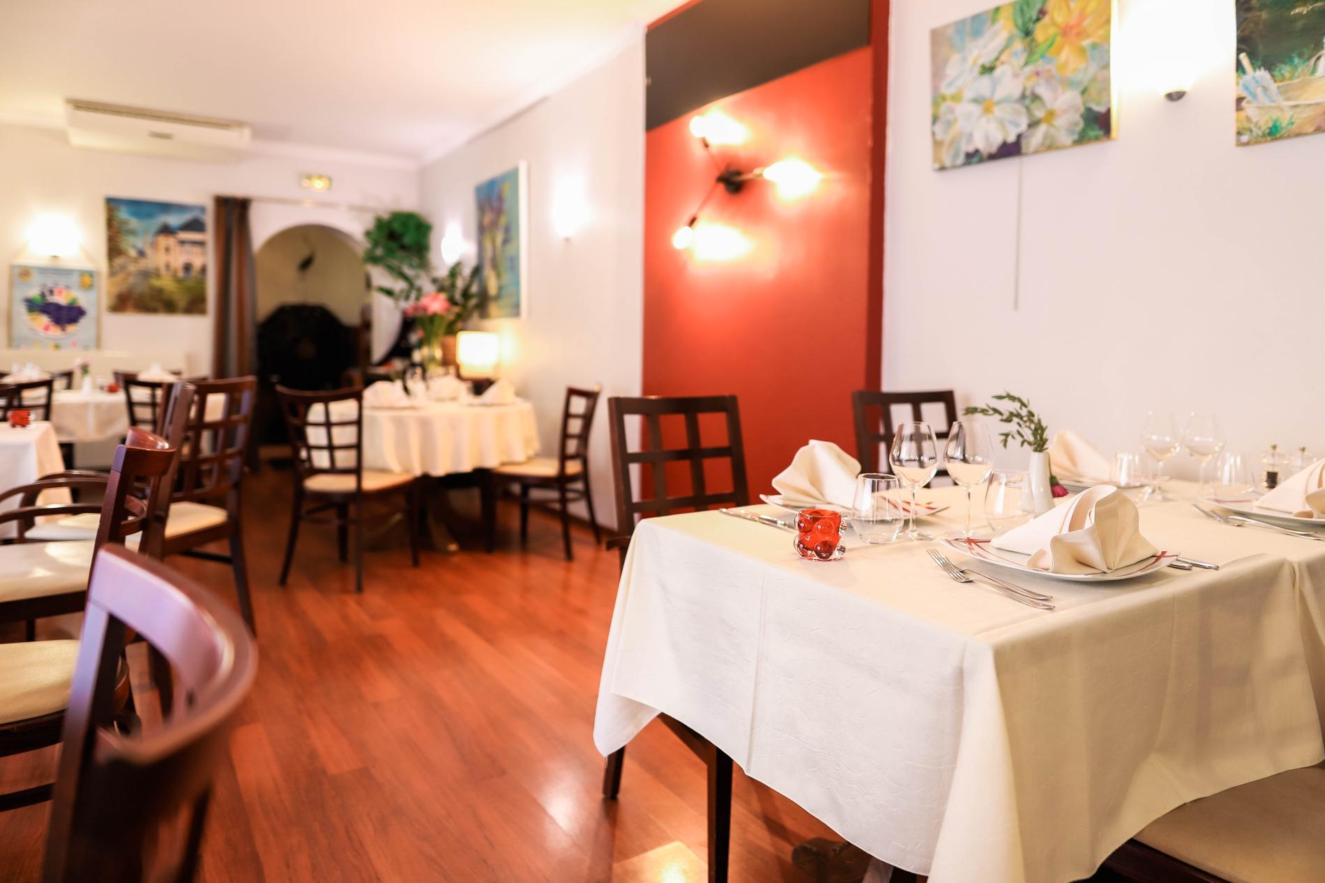 Its beautiful dishes are served in our two elegant air-conditioned dining rooms or out of sight, in the calm of our delightfully shaded inner terrace.